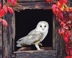 European Barn Owl In A Barn Window (Autumn Scene)