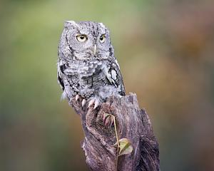 Smokey The Eastern Screech Owl Perched On A Tree Stump